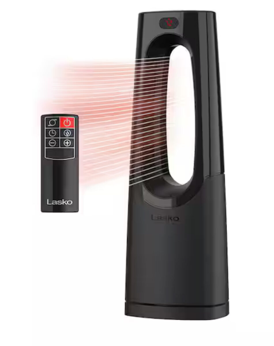 / Lasko Bladeless 1500W 28 in. Black Electric Oscillating Tower Ceramic Space Heater with Remote Control