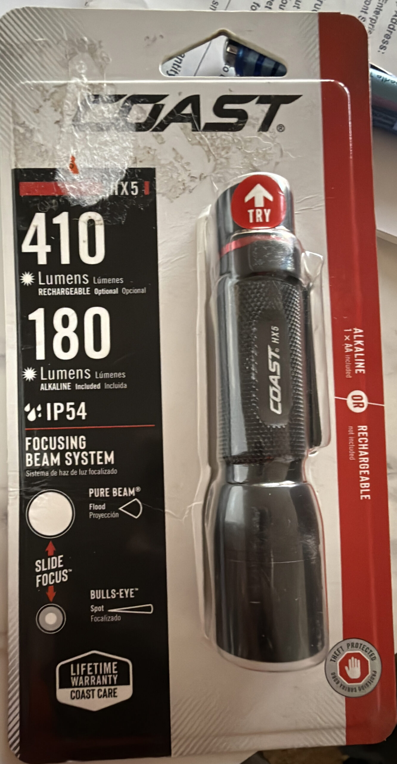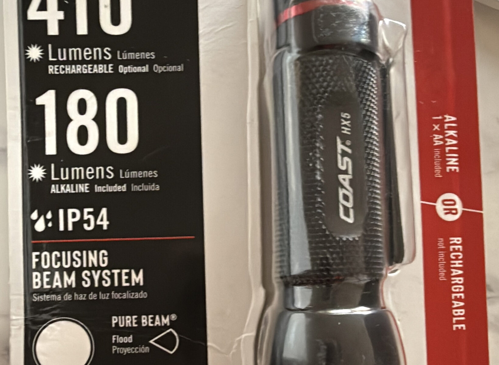 / Coast Lumen Alkaline-Dual Power LED Flashlight with Pure Beam Slide Focus and Two-Way Hat Clip
