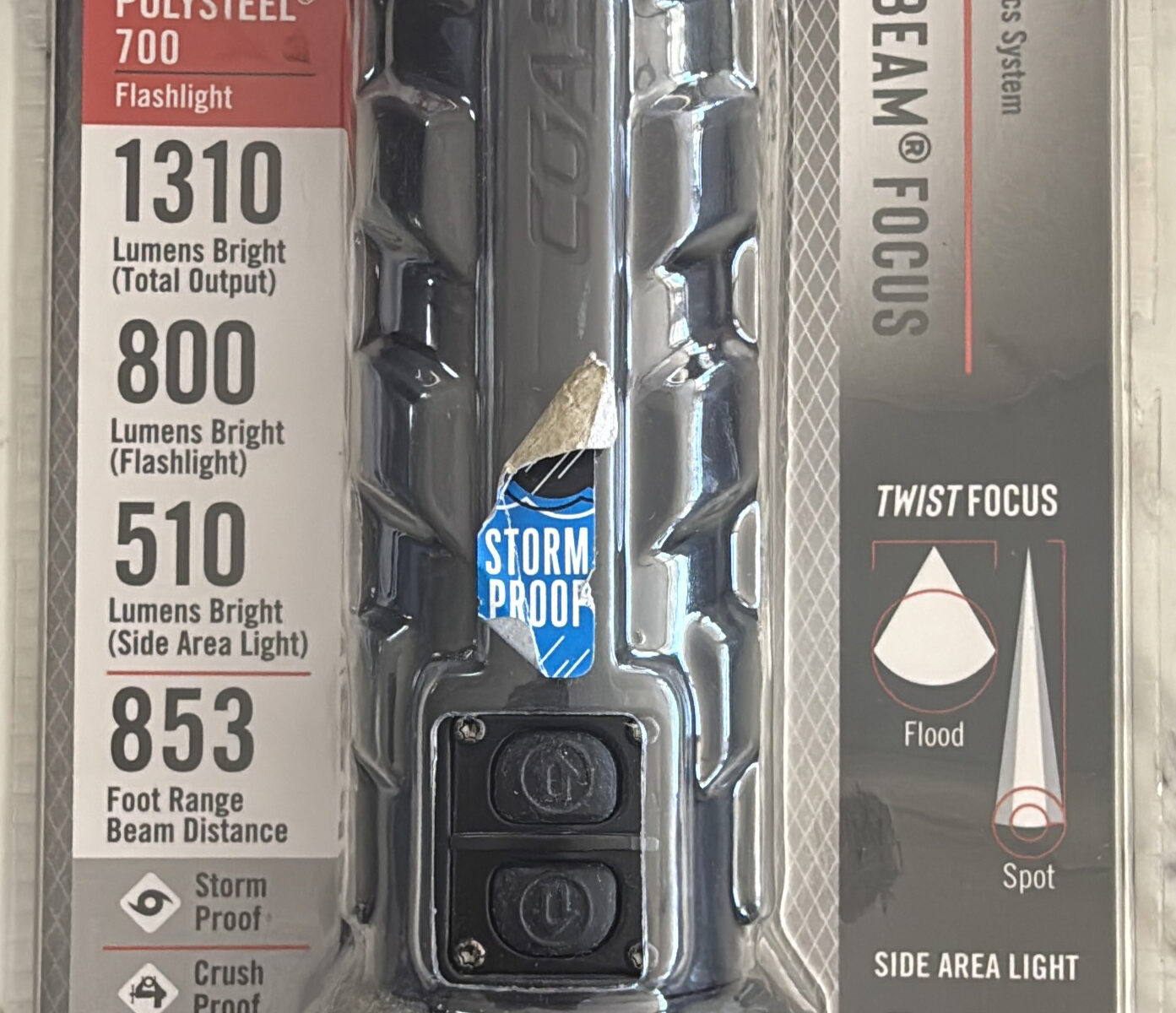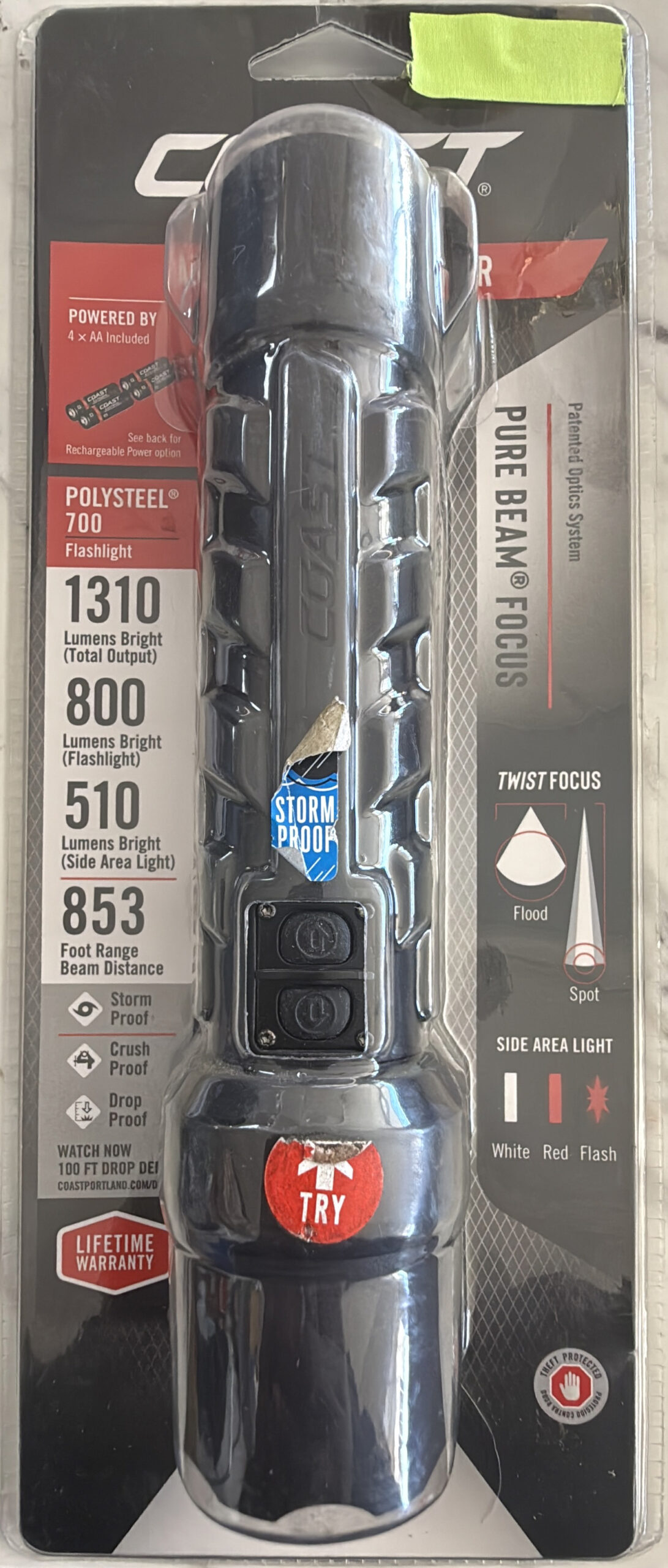/ Coast Polysteel 700 Stormproof 800 Lumen Dual Power LED Flashlight with Dual Color (White/Red)