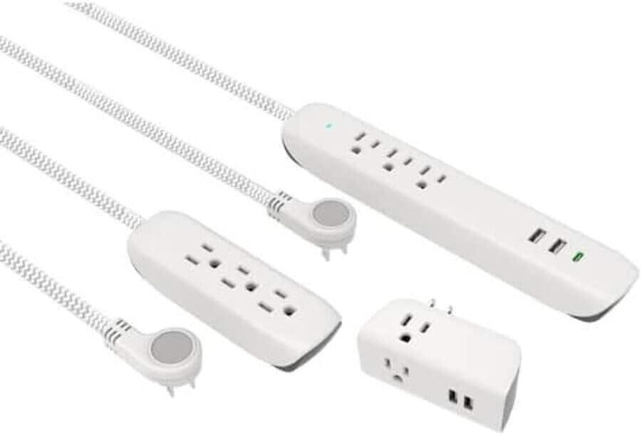 Commercial Electric 3 pack Surge Kit with USB-A and USB-C Ports – 300 Joules – 15 AMP USB total – Flat plug for tight spaces – 4ft braided power cord