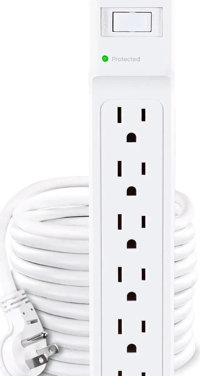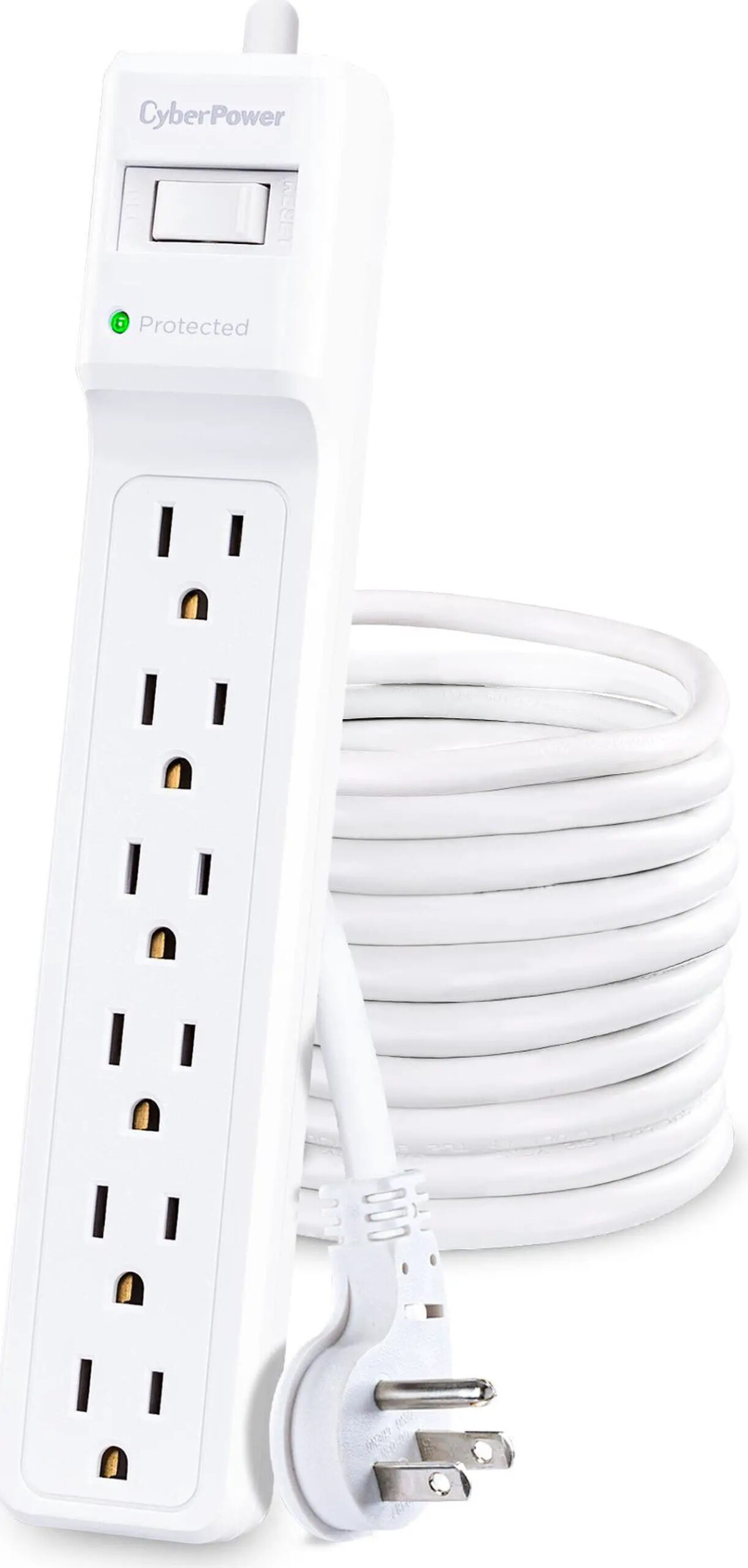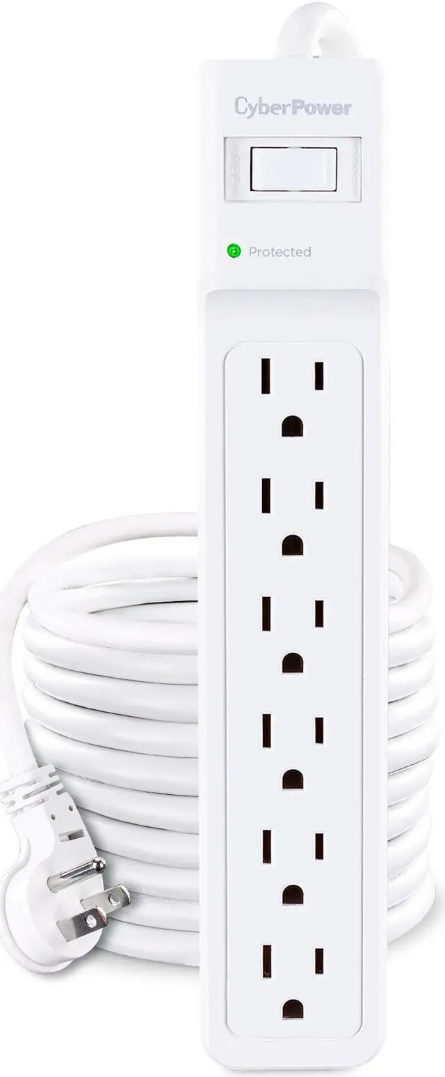 The CyberPower Surge Protector P504UC prevents spikes in energy caused by storms and electrical power surges from reaching your home electronics such as audio/video equipment, laptops and desk top computers, household appliances and small electronics. The P504UC provides 500 joules of surge protection, 5 AC outlets, 1 USB-C charging port, 1 USB-A charging port, and a braided 4 foot power cord with a right-angle plug.