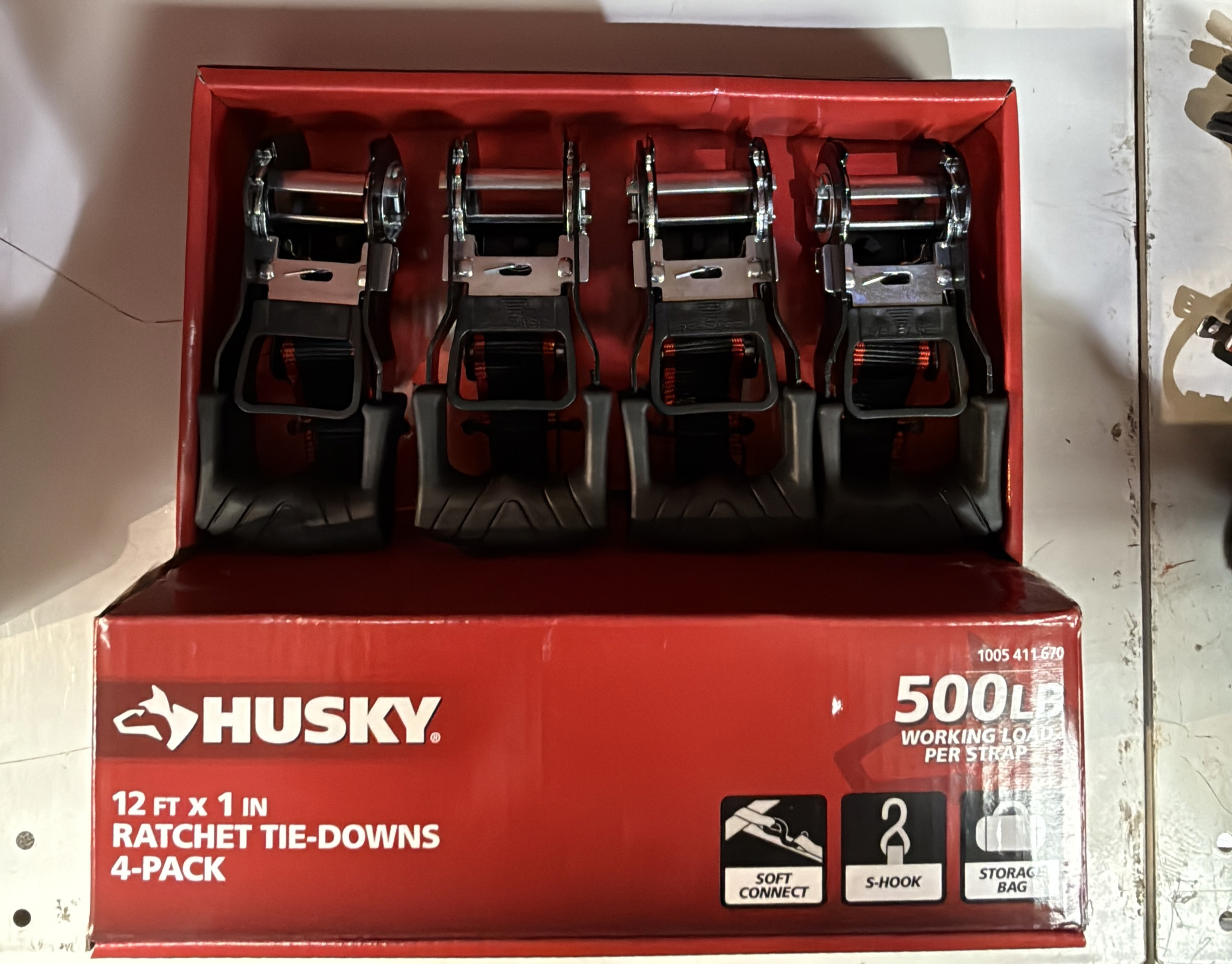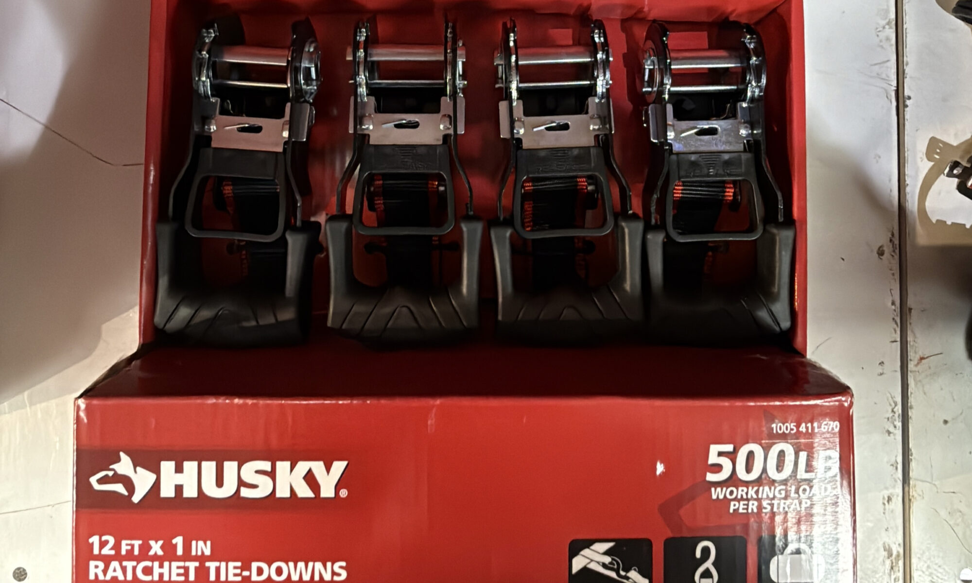 / Husky 12ft 4- Pack Ratchet Tie Downs