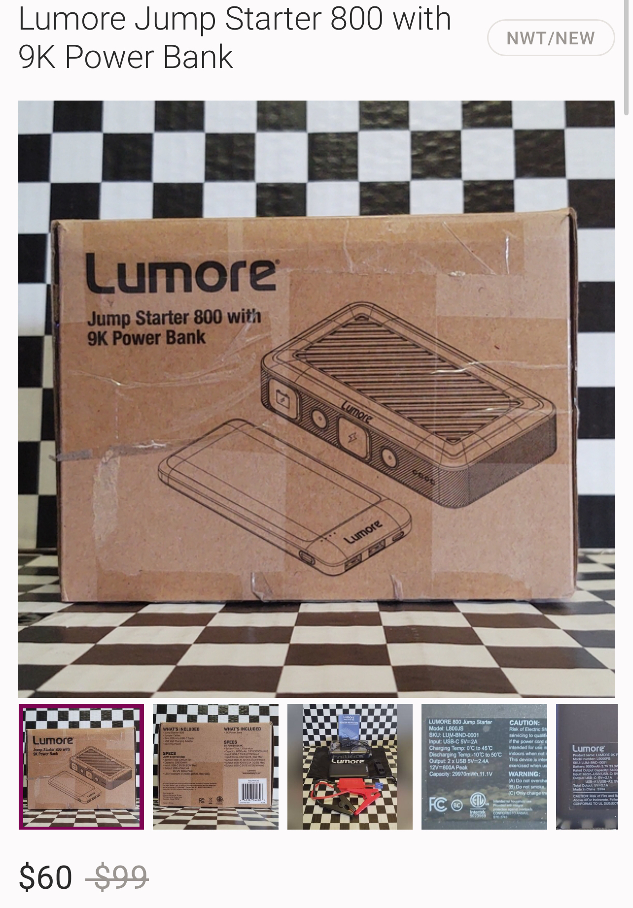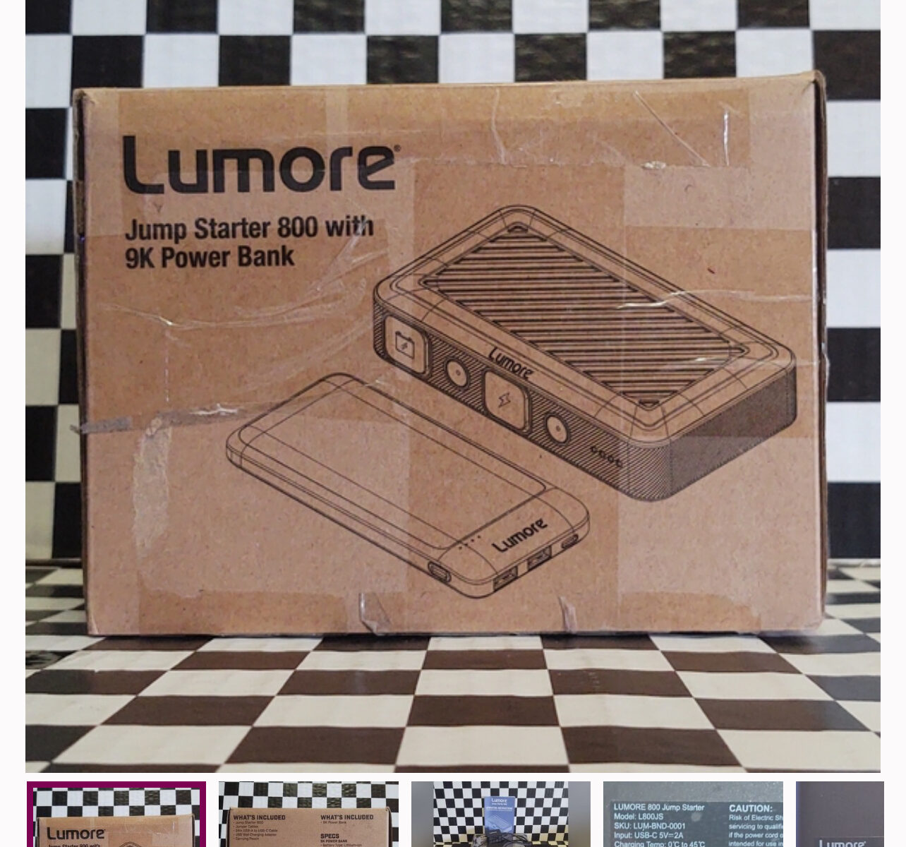 Lumore Jump Starter 800 with 9K Power Bank. Compact and efficient. Ideal for emergencies.Comes with jump starter jumper cables power bank wall charger carrying bag and user manual